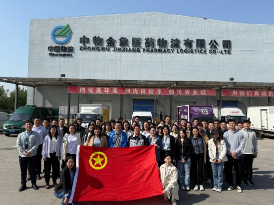 团员青年们一同赴物流股份大兴物流仓储基地开展实地研学。大家跟随讲解员共同参观了白酒仓库、中物金象药品库房、中央控制室,深入了解仓储物流在物流业务领域的实际应用。