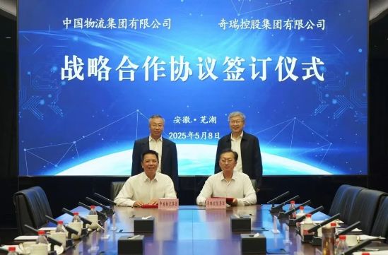 5月8日,中国物流与奇瑞集团在安徽芜湖签署战略合作协议。中国物流党委书记、董事长刘敬桢,奇瑞集团董事长尹同跃就推动战略合作落实落地进行深入交流并见证签约。中国物流党委常委、副总经理李向阳,奇瑞集团副总裁、商用车总经理巩月琼代表双方签约。物流股份党委书记、董事长董旭,党委副书记、总经理张锐,江浙事业部党委书记、总经理高凤桐参加仪式及会谈。
