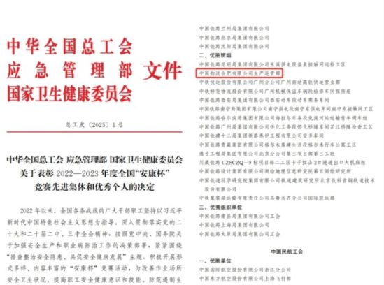 近日,中华全国总工会、应急管理部、国家卫生健康委员会印发了《关于表彰2022—2023年度全国“安康杯”竞赛先进集体和优秀个人的决定》,中国物流所属物流股份合肥公司生产运营部获评“优胜班组”荣誉称号,榜上有名!